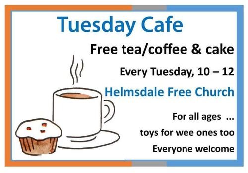 Helmsdale Free Church are running a cafe every Tuesday between the hrs of 10am -12pm. There will be free tea, coffee and cakes. There are also toys for younger ones. Everyone is welcome!