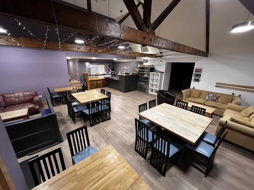 A Large hall with kitchenette area. Ideal for kids parties, meetings and conferences. Ground floor, access through cafe area.